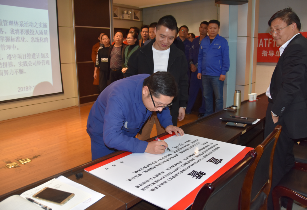 會上,質(zhì)量管理體系推進(jìn)小組成員進(jìn)行了集體宣誓并現(xiàn)場簽名,充分展示了開展《質(zhì)量管理體系提升》項(xiàng)目工作的決心。相信在公司上下一心、積極努力下,湖北佳恒科技股份有限公司一定能真正實(shí)現(xiàn)質(zhì)量管理體系提升,將IATF16949:2016質(zhì)量管理體系在企業(yè)內(nèi)部有效運(yùn)行,為企業(yè)持續(xù)健康發(fā)展保駕護(hù)航!