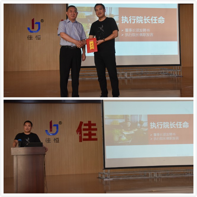 啟動(dòng)儀式上,佳恒集團(tuán)董事長(zhǎng)金波向總經(jīng)理?xiàng)罾^頒發(fā)聘書,任命其為商學(xué)院執(zhí)行院長(zhǎng)。楊繼發(fā)表了就職發(fā)言,表示:將擔(dān)負(fù)責(zé)任,做好表率,堅(jiān)持學(xué)習(xí),帶頭把學(xué)習(xí)到的知識(shí)應(yīng)用到工作中,開展好“學(xué)習(xí)型企業(yè)”建設(shè)。