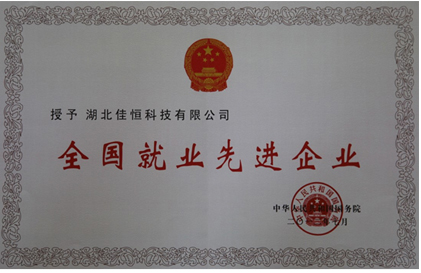 國(guó)務(wù)院授予湖北佳恒“全國(guó)就業(yè)先進(jìn)企業(yè)”榮譽(yù)稱號(hào)稱號(hào)